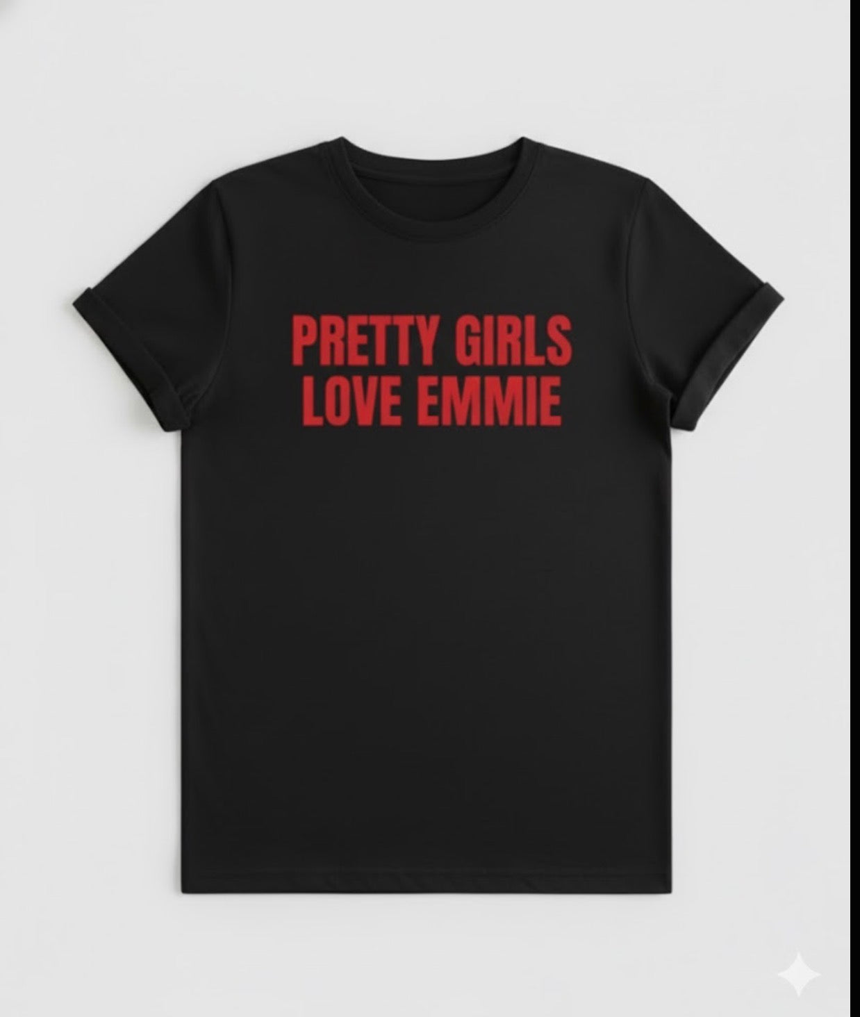 • Red “PRETTY GIRLS LOVE EMMIE” front print
